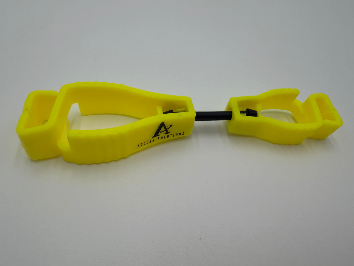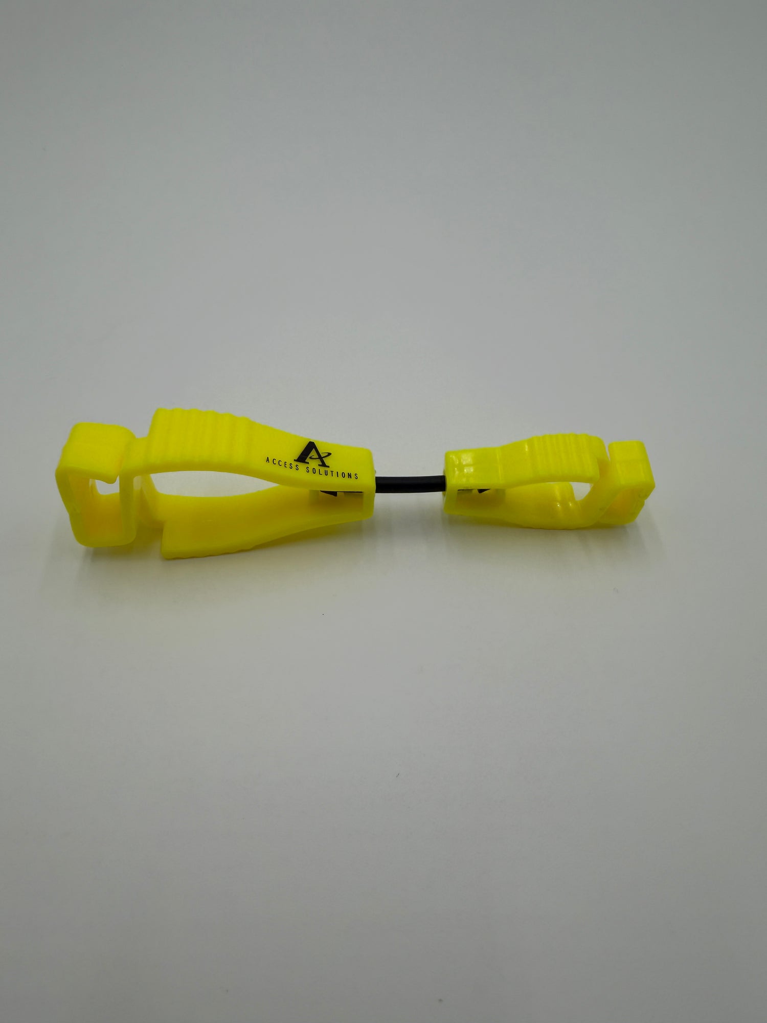 To use, attach the small end to your belt loop or directly to clothing, and clip the large end to your gloves.